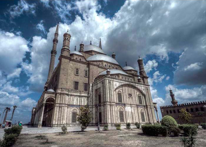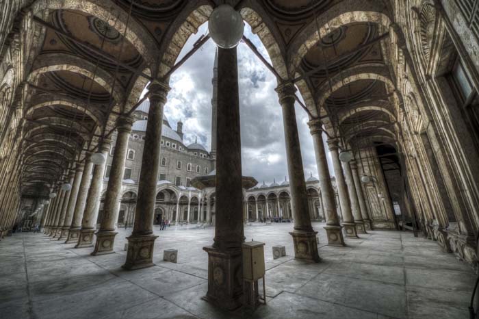 In the left hand corner of the photograph of the biulding in Cairo. The first photo of a whole building. There is written the name of Allah in the clouds. Its quite beautiful. The photography is great !