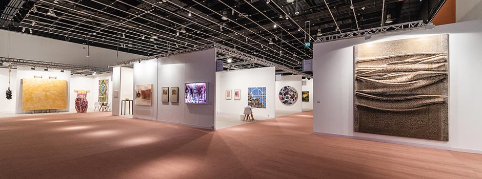 The Modern & Contemporary section of the fair will feature 26 participating galleries presenting a wide range of works by different artists. The participating galleries include Agial Art Gallery (Beirut, Lebanon), Artside Gallery (Seoul, South Korea), Baró Galeria (Palma, Spain), Custot Gallery (Dubai, UAE), Galeria La Cometa (Bogotá, Colombia), Galerie Elmarsa Gallery (Dubai, UAE), GALLERIA CONTINUA (San Gimignano, Italy), Gallery Lee & Bae (Busan, South Korea), Gallery Tableau (Seoul, South Korea), Giorgio Persano (Turin, Italy), Green Art Gallery (Dubai, UAE), Hafez Gallery (Jeddah, KSA), Hunar Gallery (Dubai, UAE), Le Violon Bleu (Carthage, Tunisia), Leehwaik Gallery (Seoul, South Korea), Leila Heller Gallery (Dubai, UAE), Martch Art Project (Istanbul, Turkey), Mono Gallery (Riyadh, KSA), Perrotin (Paris, France), Rossi & Rossi (Hong Kong), Sapar Contemporary (New York, USA), Shirin Art Gallery (Tehran, Iran), Tabari Artspace (Dubai, UAE), Wadi Finan Art Gallery (Amman, Jordan), Yavuz Gallery (Singapore), and Zawyeh Gallery (Dubai, UAE).