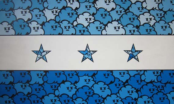 Iraqi flag on wood (by MYNE, a London street artist hailing from Mosul) Image Courtesy of INtheFRAME