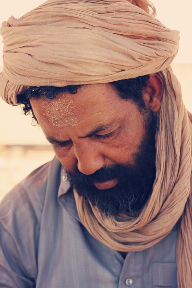 Description: A Tauareg Muslim just finished his Asser prayer in the desert.