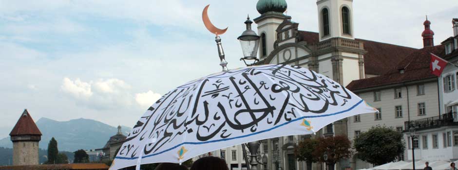 Wamidh Al-ÂAmeri made a new project called: "European Rescue Umbrella", an umbrella with an excerpt from the Qur'an written on it and a half moon on the tip. By making people walk with the symbol of Islam in front of the Jesuit church in the Swiss city Lucerne the artist is attempting to create a dialogue between the Christianity and Islam. The artist plays with associations so the work's title "European Rescue Umbrella" could symbolize the money from Islamic countries supporting many companies and banks in Europe in the present difficult economical situation.