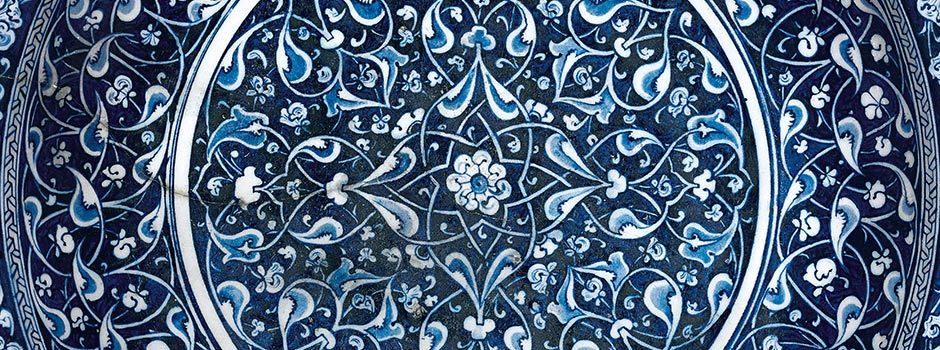 One of the most important pieces of Iznik pottery remaining in private hands, this large and intact dish, or charger, represents a significant discovery in the field of Ottoman art. It belongs to the earliest group of Iznik – produced at the very advent of the art form during the reign of Mehmet II (‘the Conqueror’) – the finest examples of which are almost all held in museum collections across the globe. This small, and exceptionally rare, group of Iznik pottery is characterised by an intense, inky, blue-black colouring, which reflects the embryonic stage of firing control – roughly two decades before a brighter cobalt blue was accomplished. This special piece encapsulates a symbiosis of influences, both local and foreign, as well as a flair for invention.