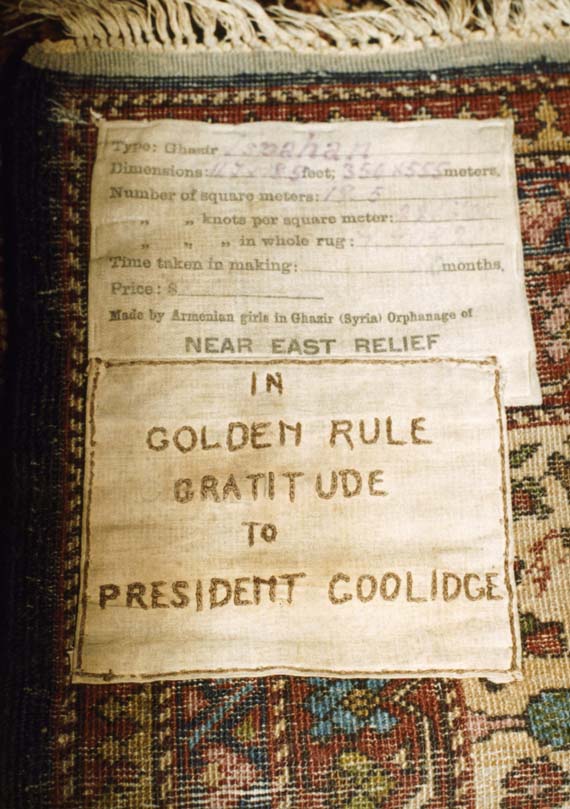 The exhibition also includes A Carpet; a rug that bears the image of the Cedar IV Rocket stamp that was produced in 1964 to honor this scientific project. The Lebanese Rocket Society was born in an Armenian University where most students were the descendents of survivors from the genocide in 1915. The piece refers, not only to the Lebanese Rocket Society but also to young Armenian girls who produced magnificent carpets in the 1920s at an orphanage workshop in Lebanon. These girls weaved one of the largest carpets during their time, which was offered to the President of the United States as a token of gratitude for American support of their workshop. Nearly 400 girls made this carpet over 18 months whose pattern represents the creation of the world. After initially being hung in the White House, the carpet is now, for political reasons, very rarely shown with few people aware of its existence. Re-produced in Armenia, Hadjithomas and Joreige’s rug is an evocation, a reenactment, of these two stories; a tribute to the strengths of a group to survive, aspire and dream.