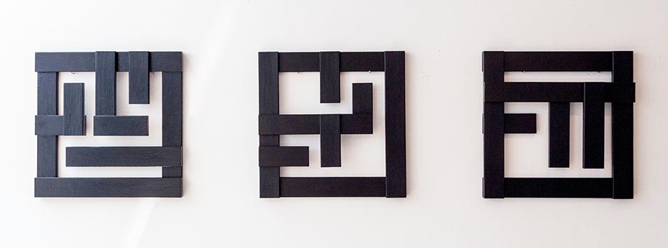Meliha Teparić works with calligraphic forms in kufic style, researching meaning and interpretation while using negative and positive form to indicate the overall complexity of all the things around us, and their primary, inner dimension of existence.