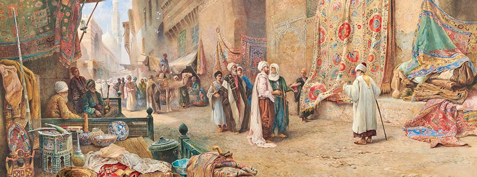 Charles Robertson (British, 1844-1891), A Carpet Seller, Cairo, watercolour on paper / Courtesy of Sotheby's