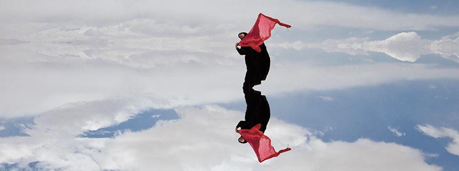 A centerpiece of Collapse is the multimedia series 'Silsila', which was first shown as part of the Maldives pavilion of the 2013 Venice Biennale. Depicting a journey that traces the footsteps of fourteenth-century Moroccan explorer Ibn Battuta, Alshaibi composes a chain of images that link the significant desert areas and shrinking bodies of water of the MENA region to the island nation of the Maldives, which is currently threatened by rising sea levels. Also inspired by the nomadic traditions of Bedouins, Alshaibi performs at each site, alluding to the processes of purification, transcendence, and renewal while signaling the mystical and historical continuity of these diverse environments.