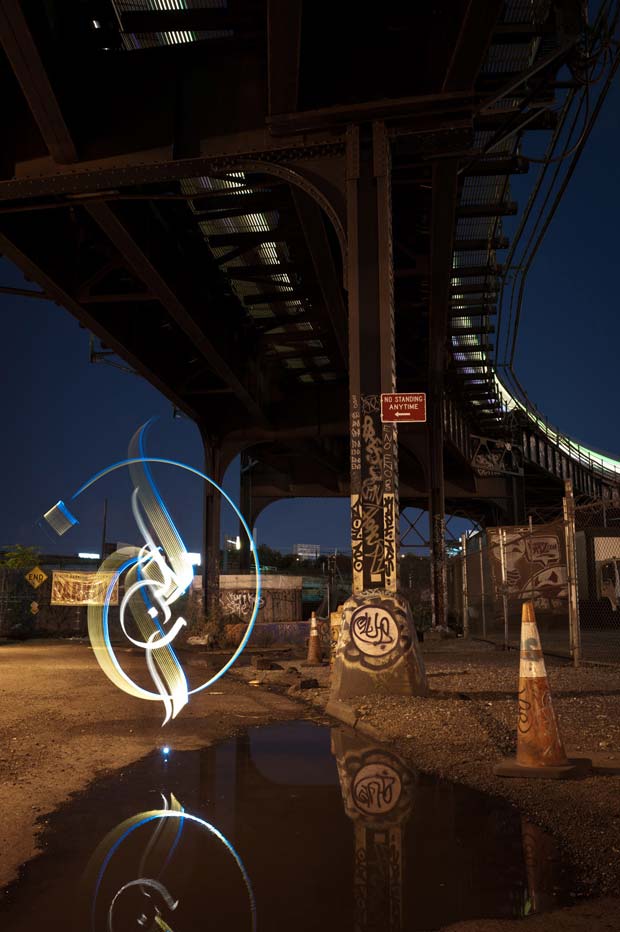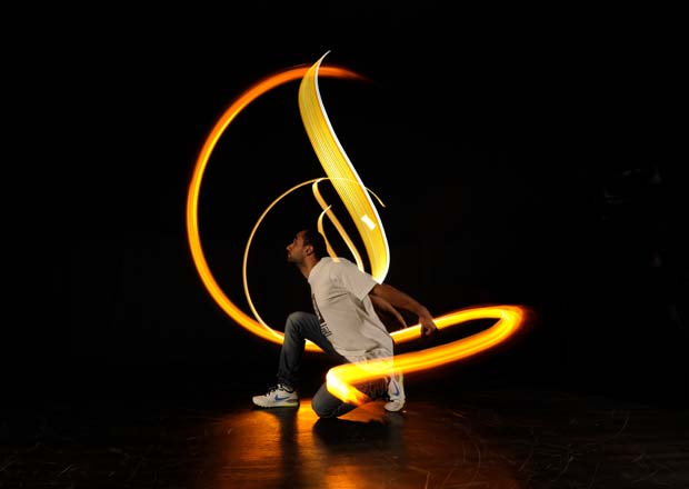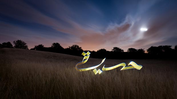 Julien Breton also known as Kalaam is a French artist based in Nantes. Influenced by the street art tradition of graffiti, his work came to be inspired by Islamic calligraphy upon encountering the art of contemporary calligraphic master Hassan Massoudy in 2001. After designing Latin alphabet scripts that resemble Arabic and working on paper, he received another aesthetic shock upon discovering light calligraphy in 2006. Turning to calligraphic light painting, his performances are garnering increasing attention worldwide. The strength of his work resides in its breaking down of barriers between high and popular art, between media —his art encompasses movement, light, photography and script—, and between East and West as despite its evident indebtedness to Islamic calligraphy, it also integrates Western and East Asian elements.