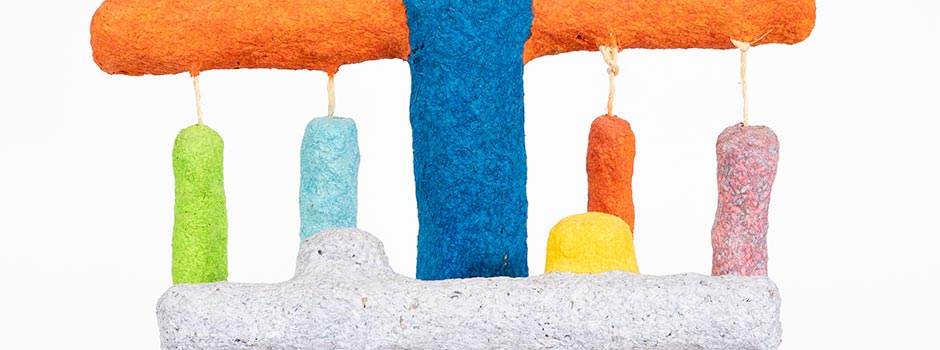 Mohamed Ahmed Ibrahim, Hanging Flowers, 2019 Cardboard, twine, papier-mache 45 x 42 x 15 cm / Courtesy of the artist and Lawrie Shabibi / Photo by Ismael Noor of Seeing things