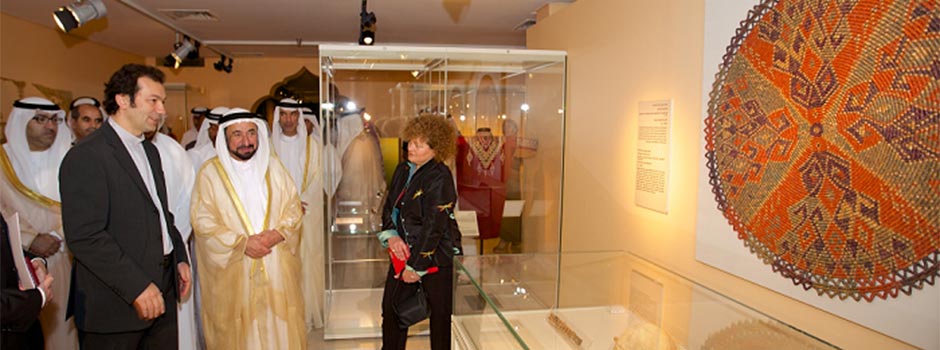 His Highness toured the exhibition, exploring the 70 exhibits that include textiles, musical instruments, jewelry, rudimentary weapons, books and manuscripts. The exhibition commemorates an unprecedented collaboration between the Sharjah Museum of Islamic Civilization and the Vatican Ethnological Museum and will run until June 14th, 2014, is being held at Sharjah Museum of Islamic Civilization (SMIC), and marks the celebrations of Sharjah as the Capital of Islamic Culture 2014.