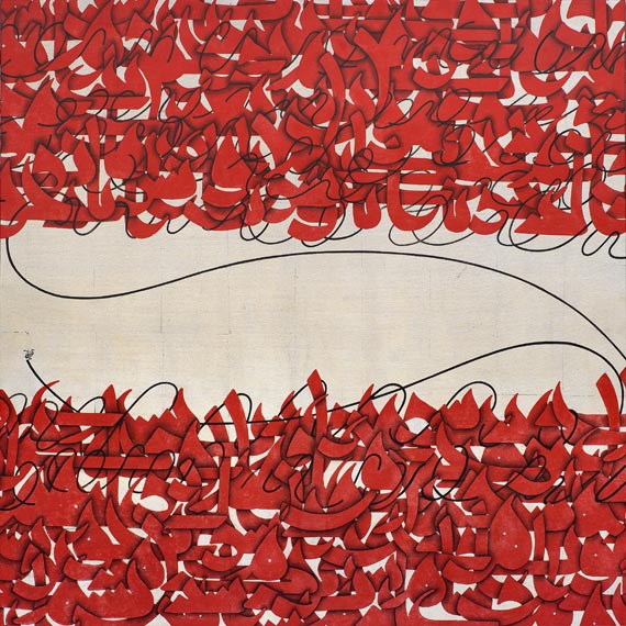 Although the artists have been trained in and inspired by classical calligraphy, tradition serves them mainly as a point of departure for their explorations of this art form. In an effort to document and recognize the importance of what is happening in contemporary Iranian art, the exhibition has gathered together work by young artists who represent this exciting period of transition.
