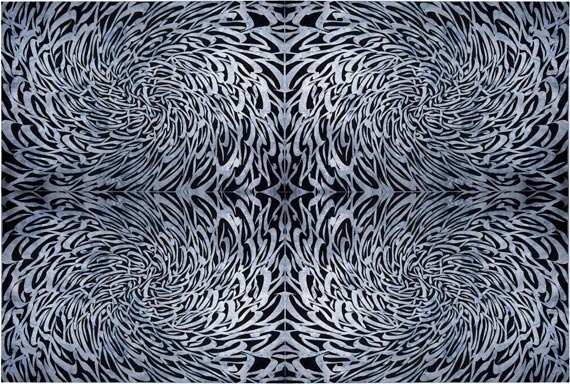 While the “next generation†of artists in this exhibition have received varying degrees of calligraphy training, their artistic journeys and their particular historical moment have inspired them to become artists, not artisans. Instead of following calligraphic traditions, these artists have followed in the footsteps of the early masters who first began to revolutionize the form, including Mohammed Ehsai, Charles Hossein Zenderoudi, and Nasrollah Afjehei, who were able to study in Iran as well as at art academies in Europe and could travel easily between east and west to pursue new inspirations while developing their own visual language.