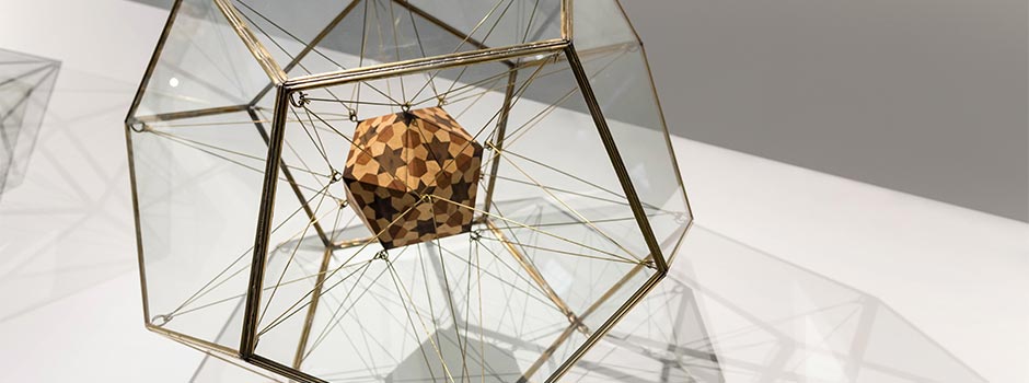 Dana Awartani, Platonic Solid Sculptures series, 2018, wood, brass and glass; detail / Photo © Islamic Arts Magazine