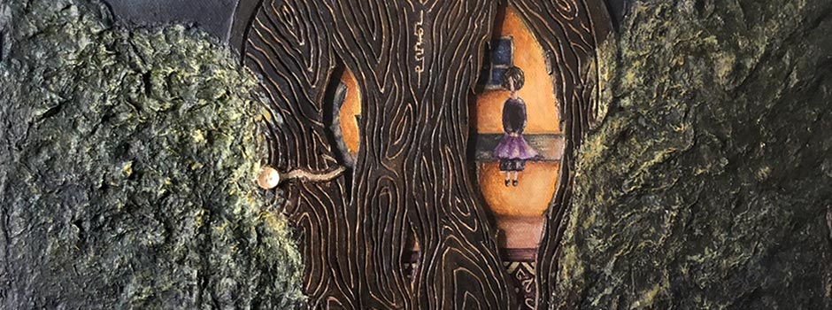 The first young artist whose artworks I fell in love with were those of the painter Huda al Bakri. Her expressive paintings are extremely aesthetically appealing. They are also multimedia as she adds linoleum, ice cream sticks, cotton, sand, glitter and sometimes some different accessories to her paintings. The reason I can never see enough of her work is because one senses immediately when an artist possesses an authentic connection between their inner life, emotions, and subconscious and the work that comes out through their paintbrushes, pastels, cameras, digital media, sculptural media, etc. It is this connection that brings depth and multi-layeredness to art. Huda’s paintings also appear to me to integrate storytelling, another powerful medium and dimension; the stories that are evoked are covert and mysterious, leading viewers to look even more at her work and ponder over their interpretation, raising many questions as the paintings above evince. For example, who and where is the bird and what is the meaning of the focus on his foot? Her expressive dream series of paintings does the same and also offers a good synthesis between the figurative and the abstract. In her more realistic images of women, their faces and bodies clearly reveal that they are feeling and thinking something as viewers wonder about what.