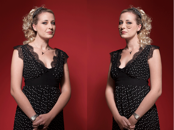 The photographic series comprises of diptychs, with one panel depicting a portrait of the subject as seen by the world, and an opposing panel depicting the subject as seen through their mind’s eye. The project which has taken close to two years to complete, was facilitated by the use of artificial prosthetics; slight imperfections, which are accentuated and most times magnified, to a scale equivalent to that haunting mental image of self-judgment. The viewer is allowed into the photographed subject’s subconscious, sharing their most confidential vulnerabilities and insecurities.