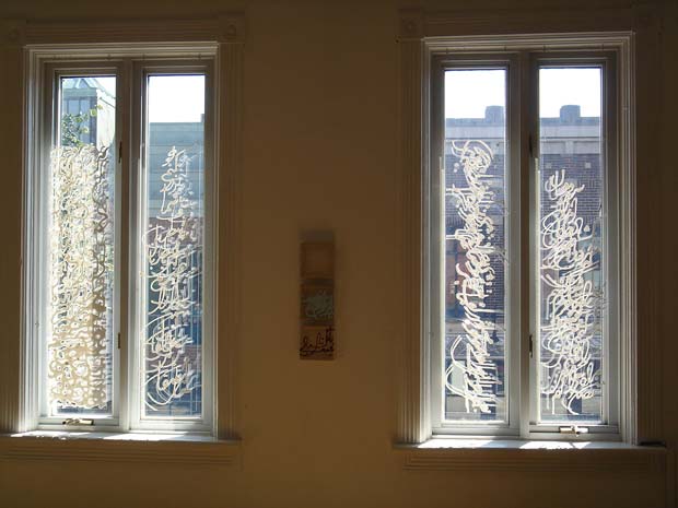 Born in Tehran, Soheila Esfahani moved to Canada with her husband in order to study at the University of Waterloo. Although planning to study architecture, she was so taken by drawing and painting that she decided to pursue a degree and career in the fine arts instead. Preoccupied with issues of cross-cultural translation and identity, her work has, until very recently, chiefly drawn inspiration from Rumi, both textually and visually. Inspired by the medieval mystic’s spiritual poetry proclaiming the universality of mankind, her paintings begin as frenzied transcriptions of his verse, the Farsi calligraphy losing its literal message and meaning as it is transformed into image and abstraction. Although the resulting paintings are beautiful, what seems to count most for Esfahani is the actual process: her canvases embody the event of their making in which the physical and the spiritual lose the duality often ascribed to them. Process has become even more central in her new body of work: installations that feature the industrial shipping pallet, a globally ubiquitous symbol of international migration and transnational exchange. In this series called Trans, Esfahani shifts the emphasis from text to that of context and adopts a more complex view of the possibility or nature of cross-cultural relationships. I sat down with Soheila to find out more about her ideas and art.